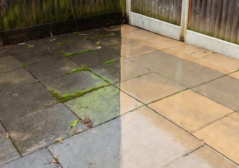 We professionally remove moss, algae, dirt, grime, and weather‑related stains to restore the original colour and appearance of your patio. Our expert patio cleaning and pressure washing service brings tired, slippery surfaces back to life, making your outdoor space clean, safe, and inviting again. Whether your patio is covered in moss, marked by years of weathering, or simply needs a deep refresh, we deliver long‑lasting results that instantly improve the look of your home.